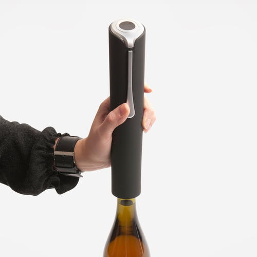 I like that this electric wine opener has a charging stand. This means you don't have to keep in plugged in, or waste batteries. When not in use, the opener can be stored on the charger so it is always ready to use. The all black design is modern and sleek so you can keep it right on your bar.