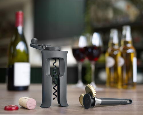 The Joseph Joseph BarWise Bottle Opener Gift Set includes both a BarWise Wine Opener and a BarWise Magnetic Bottle Opener. With this set in hand, you can open wine and beer with ease. The gift set makes a wonderful gift for a party host.